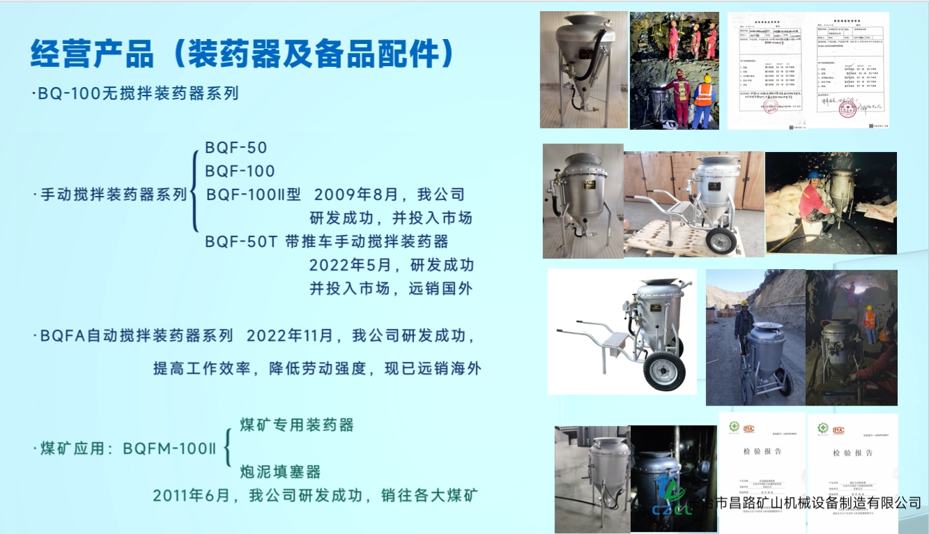 由于井下頻繁裝藥作業(yè),手動攪拌易導致裝藥密度不均,爆破質量也有提升的空間,我公司經過多次實驗,于2022年創(chuàng)新研發(fā)BQFA自動攪拌系列裝藥器,在裝藥過程中,搬運方便,減少施工作業(yè)時間,裝藥均勻,提高工作效率,降低勞動強度,裝藥器的各項性能得到顯著的提高,在福建某礦山首次使用,得到礦山的大力認可和推薦。